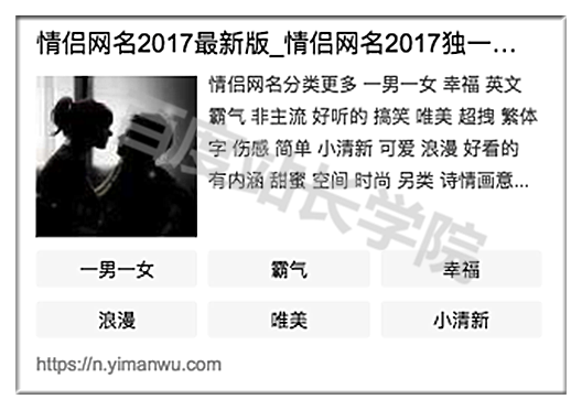 此類頁面的核心詞是圍繞的主題,修飾詞可以是主題的屬性、站點名、品牌詞或宣傳語。