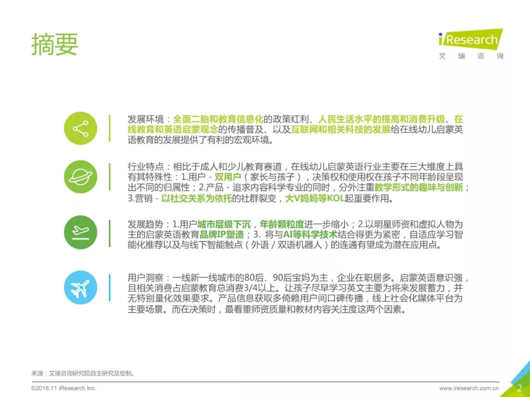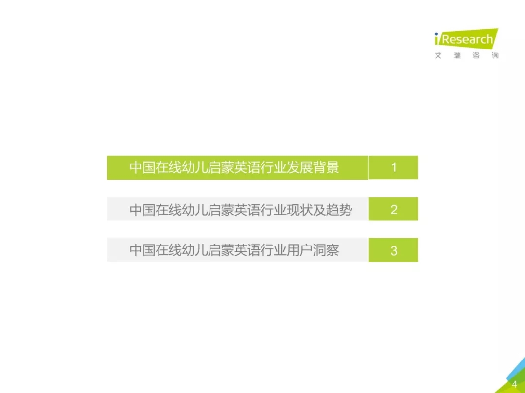 ? 《中國在線幼兒啟蒙英語行業白皮書》通過定性和定量調研,對國內在線幼兒啟蒙英語行業的發展歷程、背景、現狀、趨勢和用戶進行深入探究和分析。希望此份報告能夠為市場各方對此行業的深入了解提供參考。