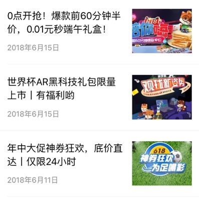 每3-4天都有一次福利放送的促銷活動,在指定時間內,只要購物滿xxx元,就可以優惠xxx元,某些食品多買還能多送。吸引用戶的眼球,讓用戶因為貪圖便宜而選擇持續關注。