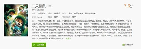 三只松鼠出了同名3D動畫《三只松鼠》,截止至目前為止,播放量已過1億(以愛奇藝為準),可見其火爆程度。