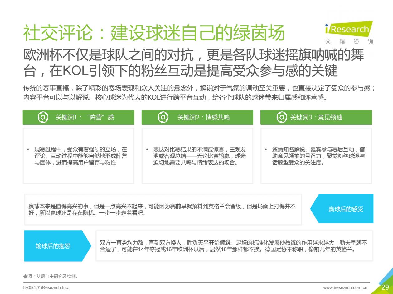 當前位置:首頁>領袖意見>2021年歐洲杯用戶分析研究報告 2021年歐洲杯用戶分析研究報告 by 領袖意見 2021-8-01 676 read Email Pinterest Facebook Twitter LinkedIn 2021年歐洲杯用戶呈現出越發多元的趨勢,新老球迷對賽事內容、觀賽形式的偏好差異越來越大;體育賽事內容平臺不再只是觀賽的媒介,更是優質資源的聚合方、品質內容的生產方,并為球迷提供更豐富的交流與互動空間--除了清晰、流暢的體驗之外,球迷更需要一座搖旗吶喊、情感共鳴的舞臺。 Email Pinterest Facebook Twitter LinkedIn Topics: 30+行業服務經驗,10+專業成熟營銷整合方案,為300+家中小企業提供適合的針對性解決方案 留下聯系方式免費獲取營銷方案,助力企業互聯網轉型獲利. [contact-form-7 id='239' title='首頁Banner'] 電話咨詢:18994105692. Thanks for subscribing. You’ll start receiving free tips and resources soon. .
