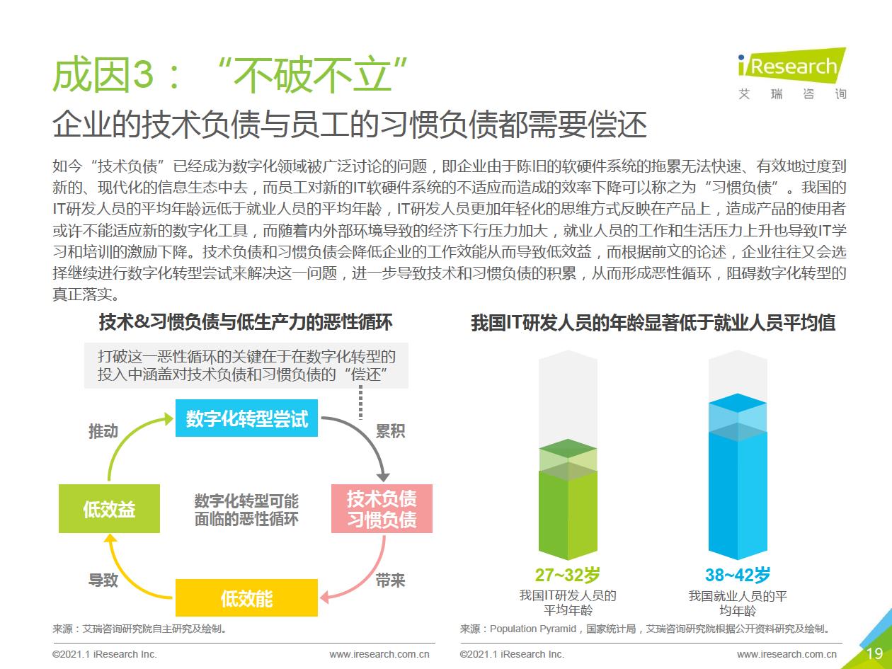 企業數字化轉型集中問題:艾瑞通過實地調研發現,在數字化轉型實踐中,企業從前期投入階段到中期內化階段,到后期輸出階段,都存在著各種各樣的問題.總結來看,中國企業現階段數字化轉型失敗的問題主要集中在兩個方面:一部分只注重成果,希望數字化轉型一站式地解決企業所有矛盾,卻將前期自我洞察、產品選型、實施規劃等環節“簡單化”;另一部分則將數字化轉型想象得過于‘’復雜化‘ ' ,因而遲遲不愿意嘗試和行勸。