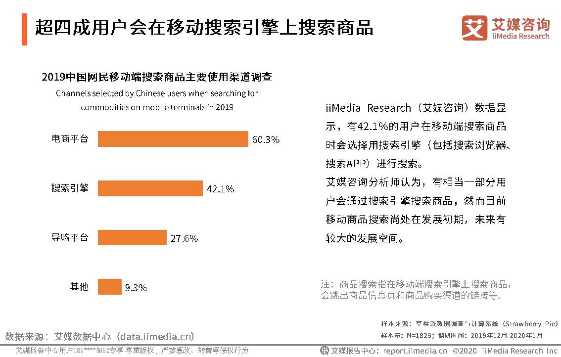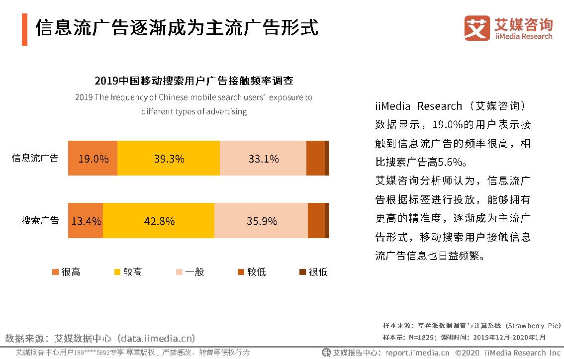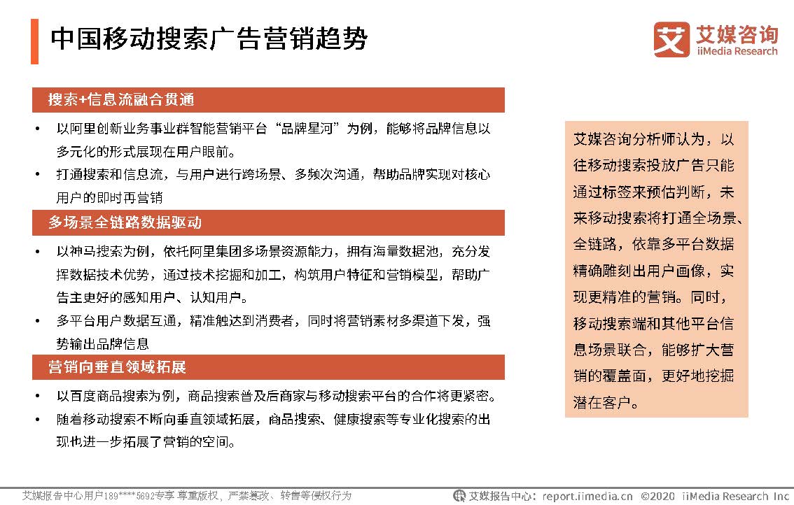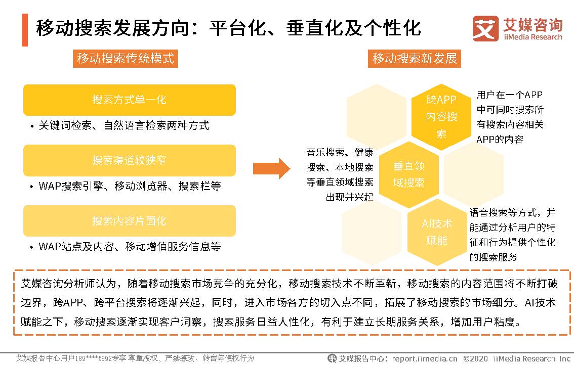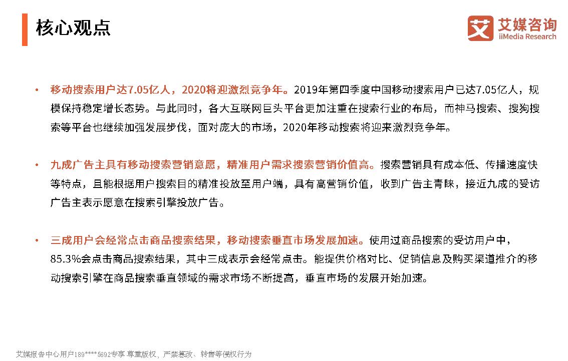 移動搜索用戶達7.05億人,2020將迎激烈競爭年。2019年第四季度中國移動搜索用戶已達7.05億人,規模保持穩定增長態勢。與此同時,各大互聯網巨頭平臺更加注重在搜索行業的布局,而神馬搜索、搜狗搜索等平臺也繼續加強發展步伐,面對龐大的市場,2020年移動搜索將迎來激烈競爭年。