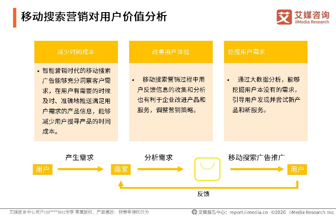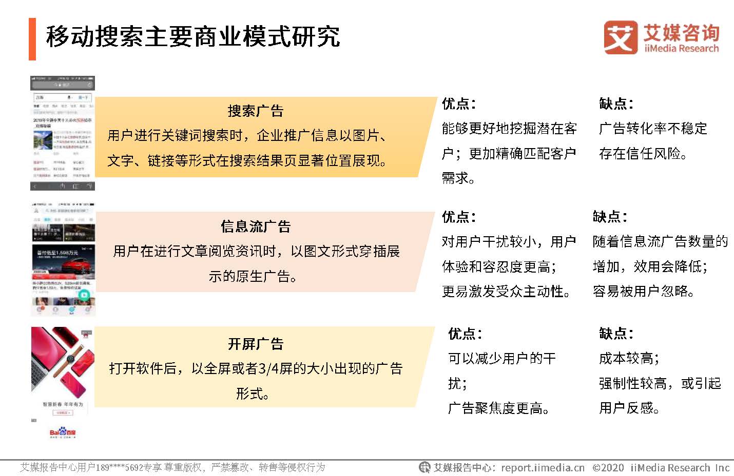 九成廣告主具有移動搜索營銷意愿,精準用戶需求搜索營銷價值高。搜索營銷具有成本低、傳播速度快等特點,且能根據用戶搜索目的精準投放至用戶端,具有高營銷價值,收到廣告主青睞,接近九成的受訪廣告主表示愿意在搜索引擎投放廣告。